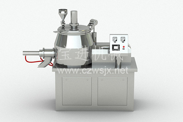 粉體物料與粘合劑在圓筒形容器中由底部混合漿充分混合成濕潤(rùn)軟材,然后由側(cè)置的高速粉碎槳切割成均勻的濕顆粒。