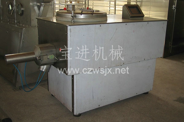 粉體物料與粘合劑在圓筒形容器中由底部混合漿充分混合成濕潤(rùn)軟材,然后由側(cè)置的高速粉碎槳切割成均勻的濕顆粒。